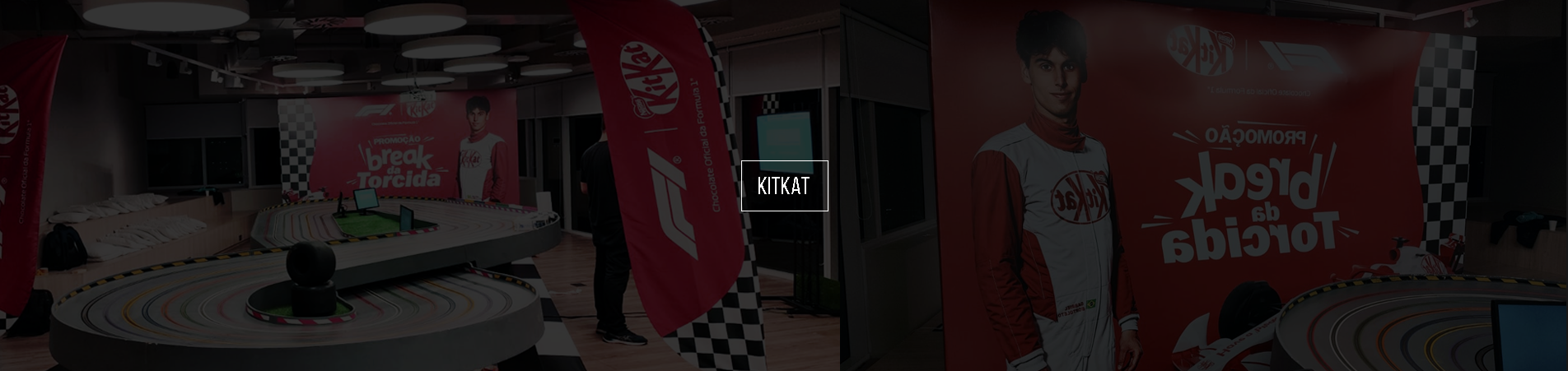 KitKat®, Fórmula 1®, endomarketing, ativação corporativa, autorama interativo, painel backdrop, DM Racer, experiência de marca, cenografia promocional, branding interno